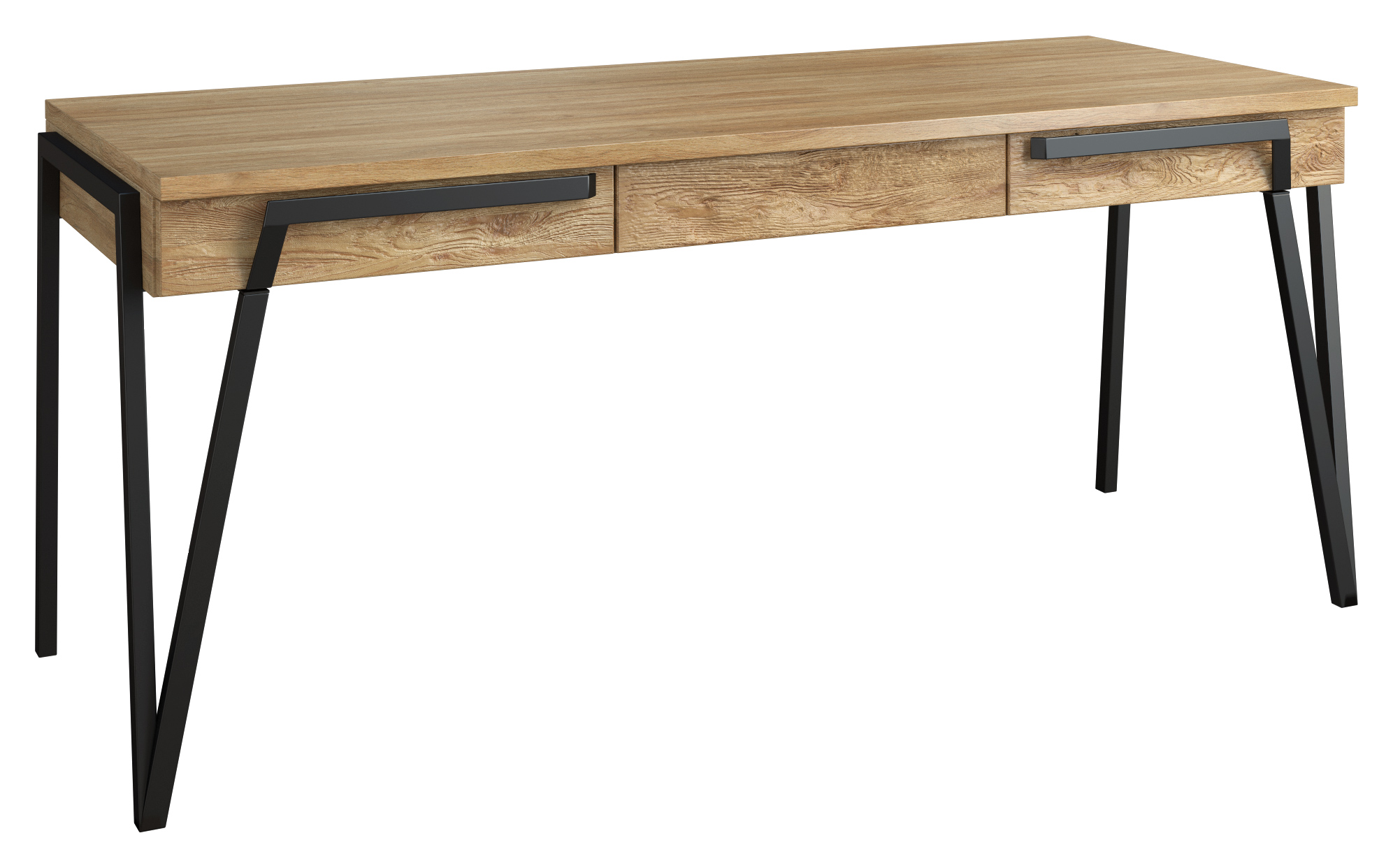 Psací stůl Pik se zásuvkami vás zaujme svým moderním a jednoduchým designem. Přední část nábytku je vyrobena z masivního dubového dřeva a korpus je z přírodní dubové dýhy. Kvalitní technologie lakování a moření dodává nábytku přirozený vzhled dřeva a zvýrazňuje strukturu lét. Jeho atypickými prvky jsou kovové práškově lakované nožky, které provzdušní celý prostor. Zásuvky mají tiché dovírání.