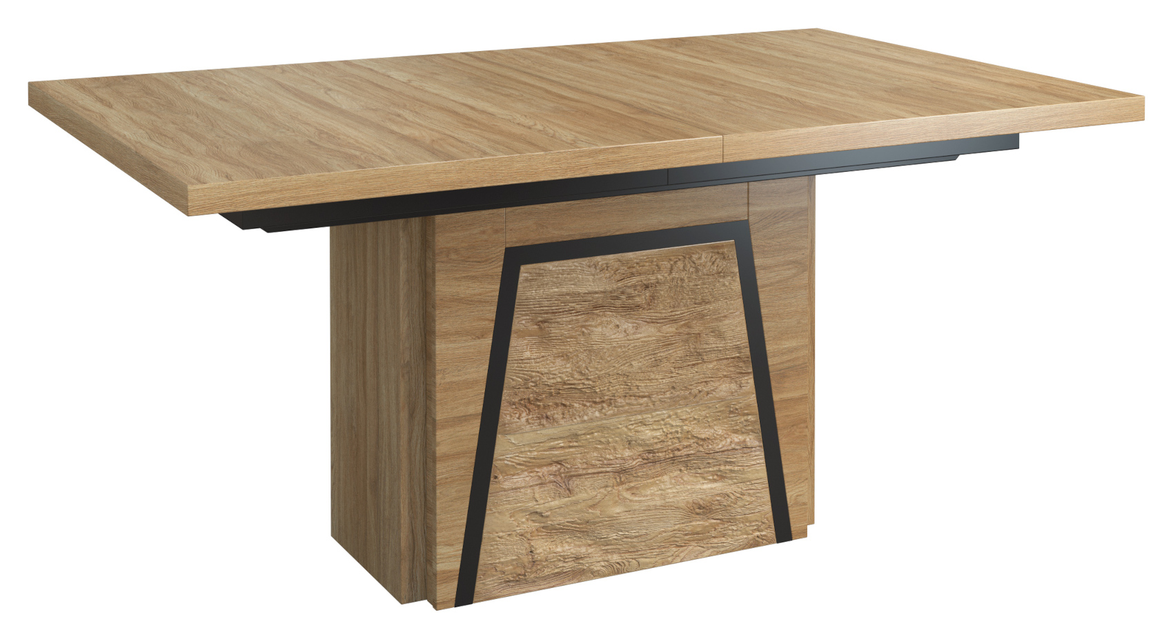 Rozkládací stůl Pik vás zaujme svým moderním a jednoduchým designem. Je vyroben z masivního dubového dřeva a přírodní dubové dýhy s černými lakovanými prvky. Kvalitní technologie lakování a moření dodává nábytku přirozený vzhled dřeva a zvýrazňuje strukturu lét.